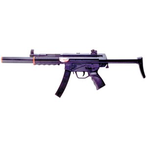 Fantastic replica of the famous MP5 SD3, a very common and popluar model of the Navy Seals and secret agents. 20 round magazine, muzzle velocity of over 300 fps, and good accuracy make this a fantastic gun for any collector or airsoft enthusiast. Has a removable silencer as well as a collapsible stock. More Detail..