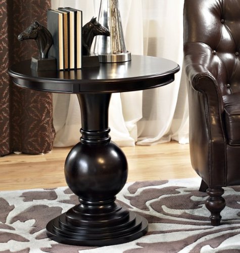 This contemporary 'Espresso' accent table is a great chairside or bedside table in any room. Features a round pedestal base, made from select hardwood veneers and solid wood material, and has contemporary styling with a bentwood skirt. 'Espresso' finish Some assembly required